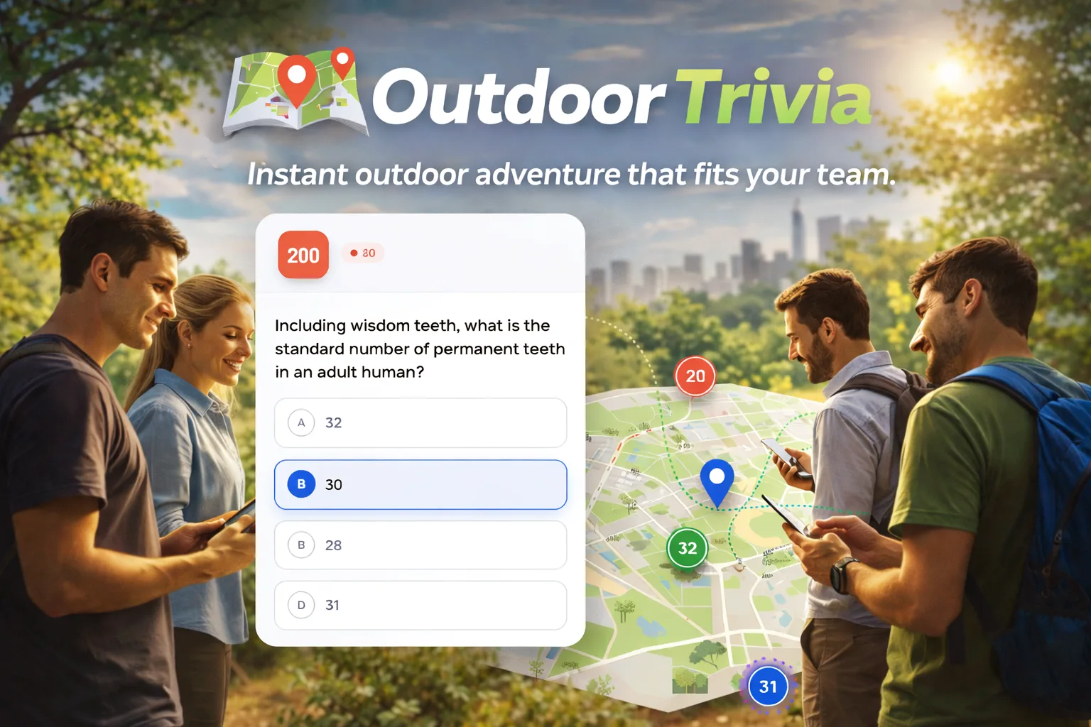 Outdoor Trivia is the ultimate zero-prep outdoor game — instantly generating a custom trivia adventure wherever your event happens to be.
